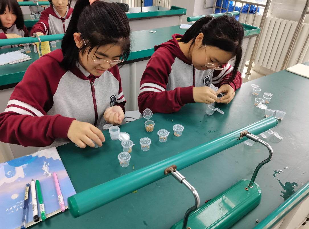 帶著好奇心和求知欲,拿到種子的八年級同學們開始了“保姆”之路。10月的天氣降溫來的突然,同學們還貼心的給種子制作了“棉襖”。