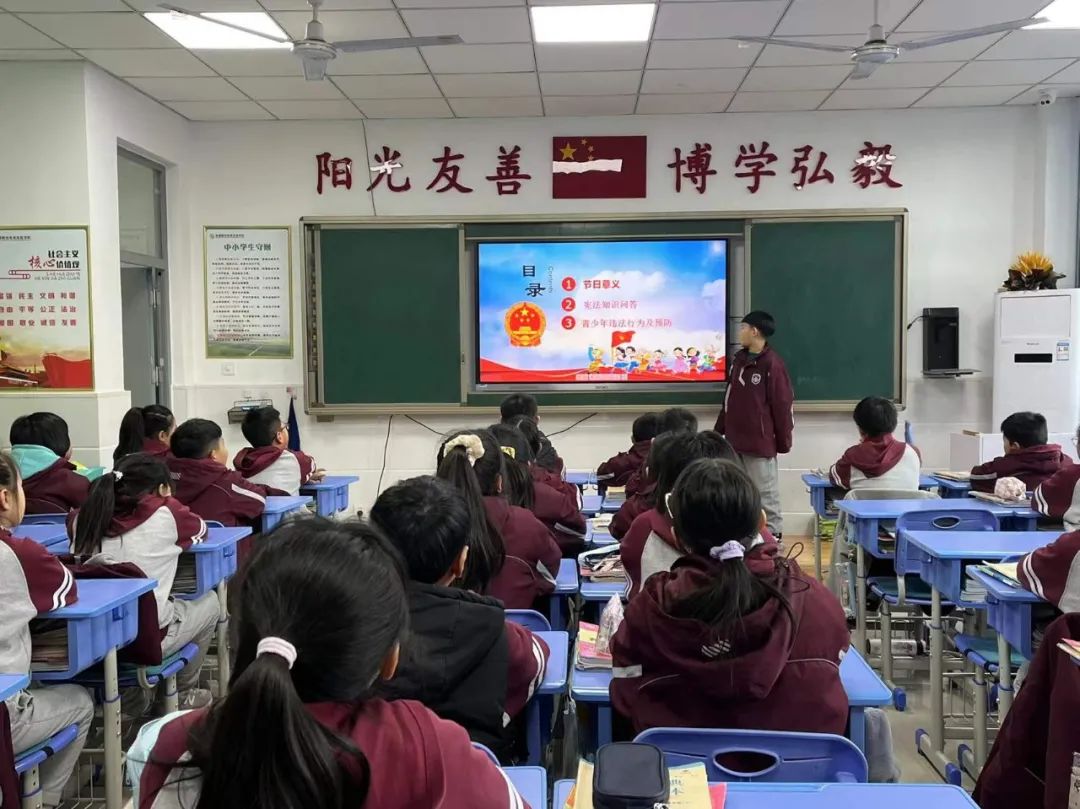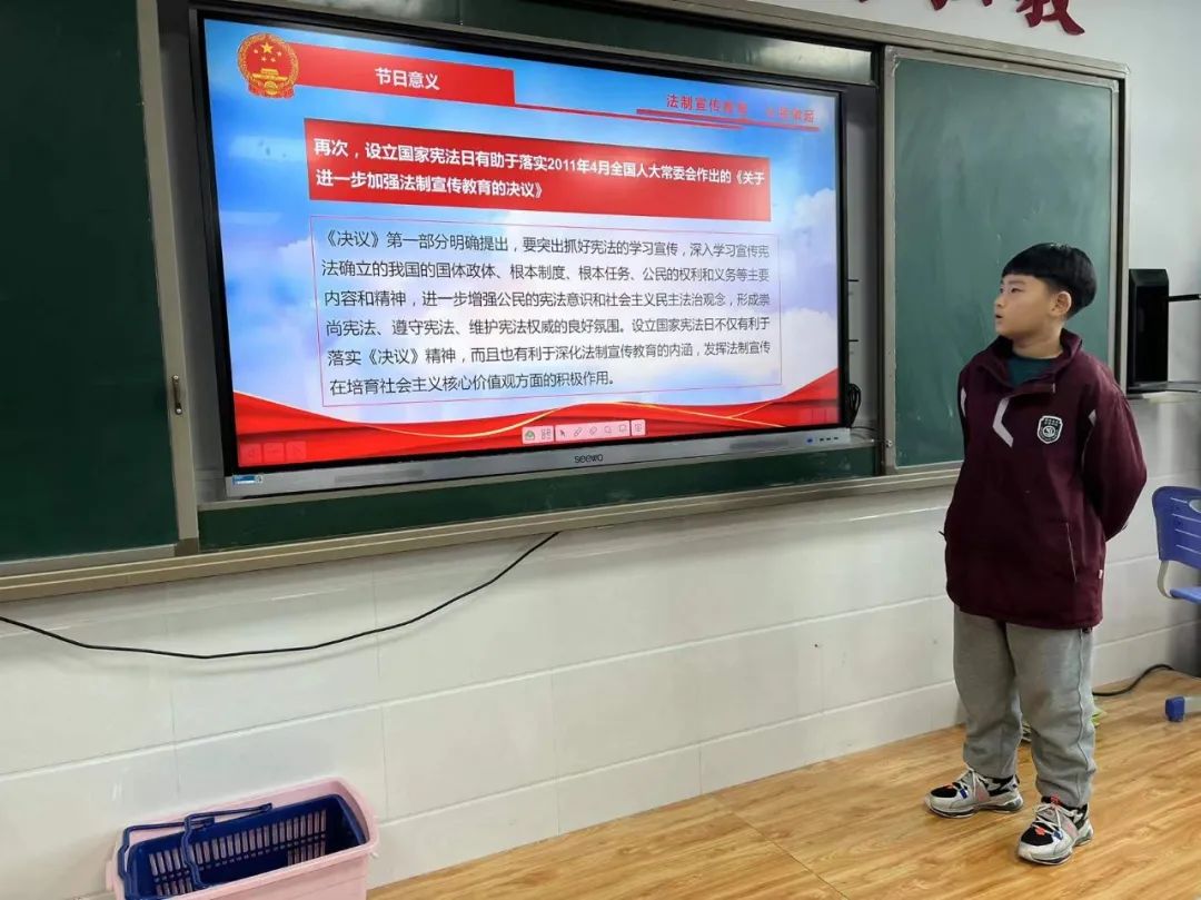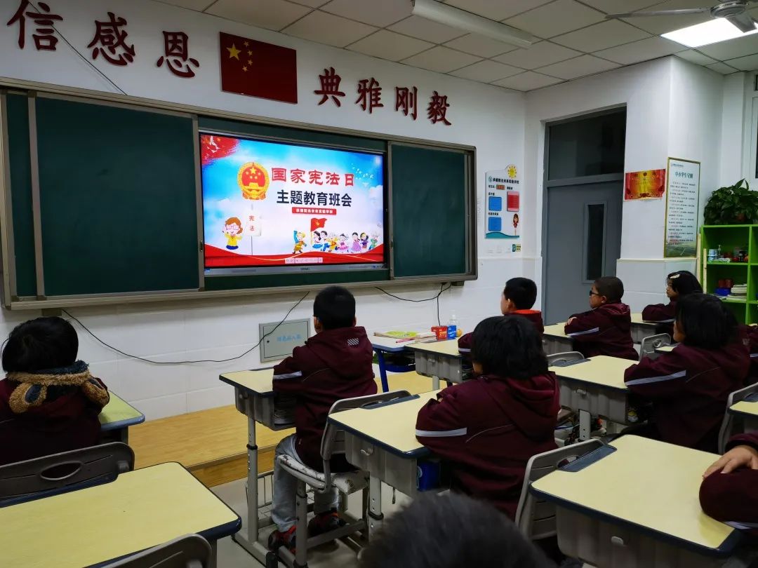 希望日后每一位同學(xué)都能自覺(jué)行動(dòng)起來(lái),積極主動(dòng)的參與到豐富多彩的國(guó)家憲法日系列主題教育活動(dòng)之中,爭(zhēng)做憲法小衛(wèi)士。 主題班會(huì) 小學(xué)部各班級(jí)還積極開(kāi)展了以“國(guó)家憲法日”為主題的教育班會(huì)活動(dòng),教育學(xué)生學(xué)法知法守法,做一個(gè)遵紀(jì)守法的好公民。不斷增強(qiáng)青少年學(xué)生的法制觀念和遵紀(jì)守法意識(shí),預(yù)防和減少違法犯罪行為。