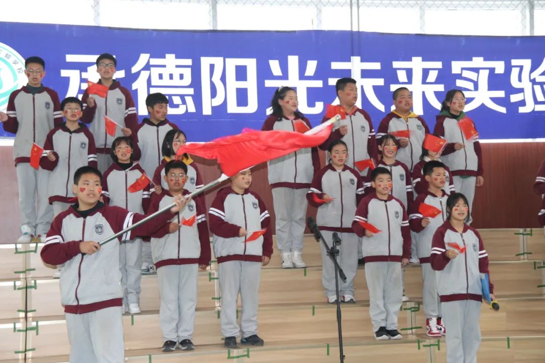 比賽最后,同學(xué)們高舉國旗,全場師生共同歡唱《歌唱祖國》祝愿偉大的祖國繁榮昌盛!