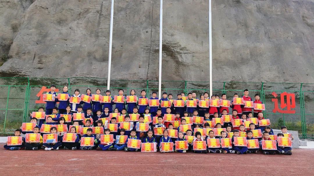 馬校長(zhǎng)為優(yōu)秀陽(yáng)光學(xué)子頒發(fā)獎(jiǎng)杯