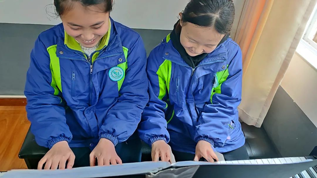 ▲孩子們正為“年會”節(jié)目做準(zhǔn)備——六手聯(lián)彈