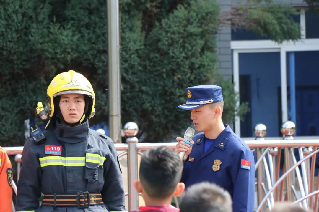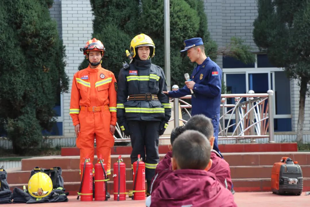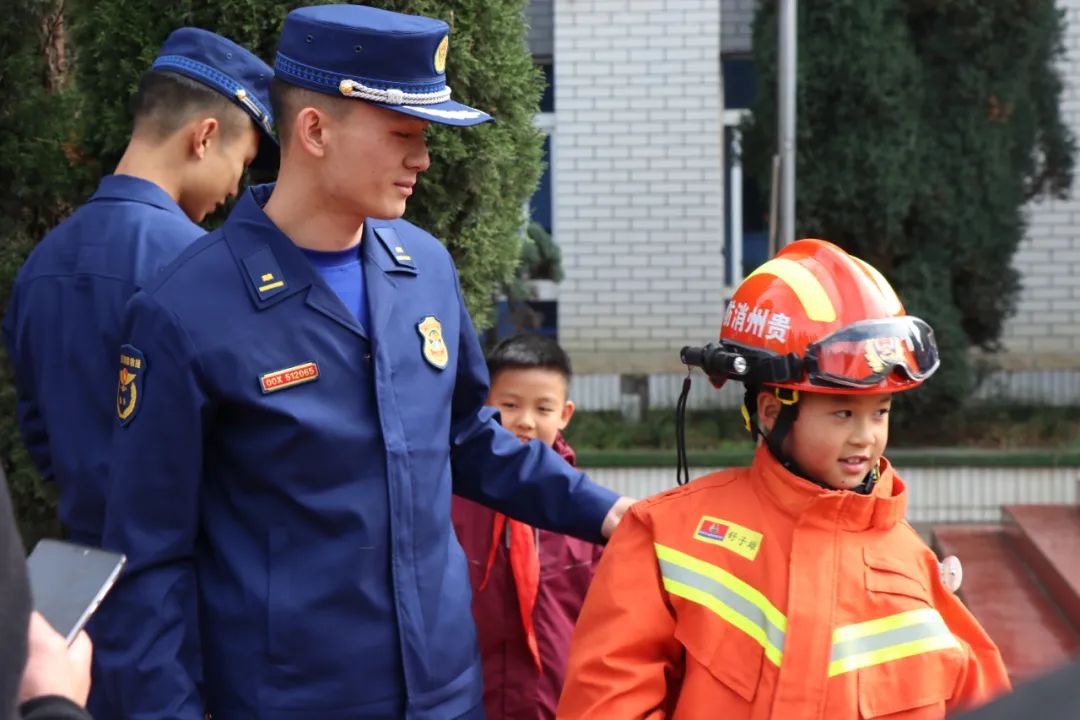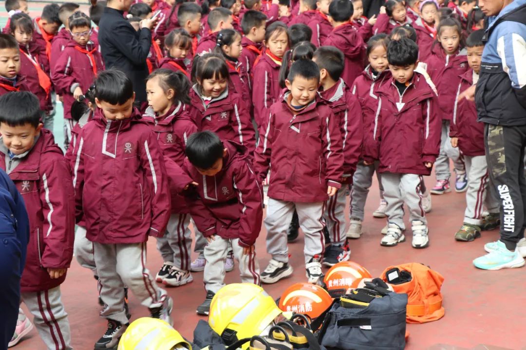 徐排長現(xiàn)場為全體師生演示消防員的服裝及救援裝備,還讓同學(xué)們親身穿上專業(yè)的服裝和裝備,切身感受到成為消防員的不容易。