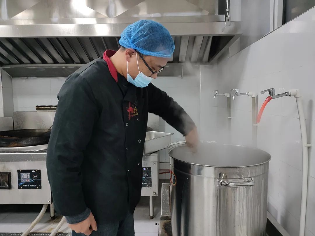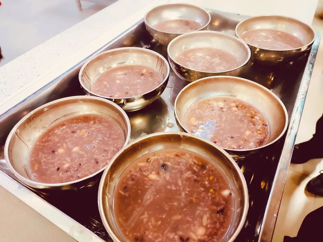 學校食堂工作人員將提前開始準備煮粥所需的材料,紅棗、紅豆、花生、綠豆、桂圓、蓮子等配料,經過挑選、淘洗、浸泡等多道工序之后上鍋開煮。食堂李師傅說,臘八粥不同于別的粥,由于食材多,需要慢慢熬制,熬制期間慢慢攪動,這樣熬粥才好吃。