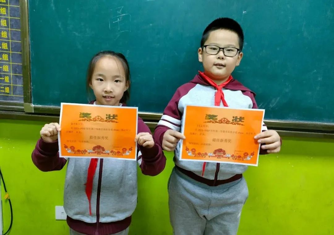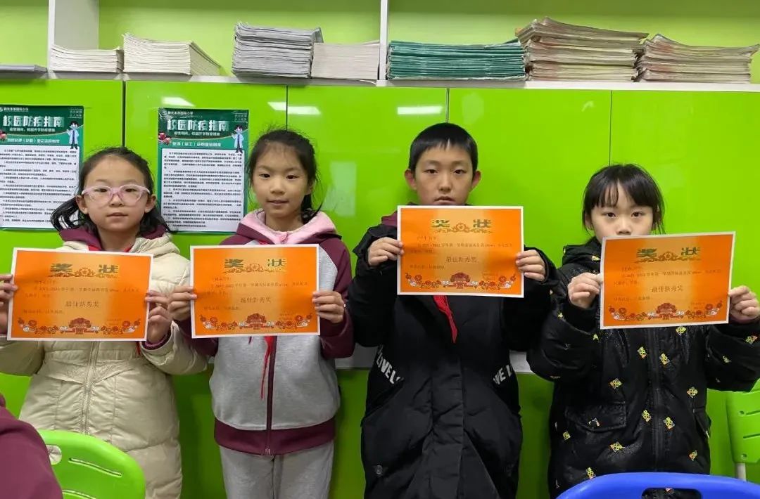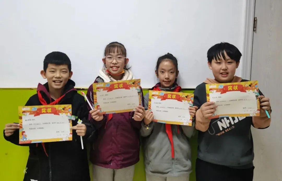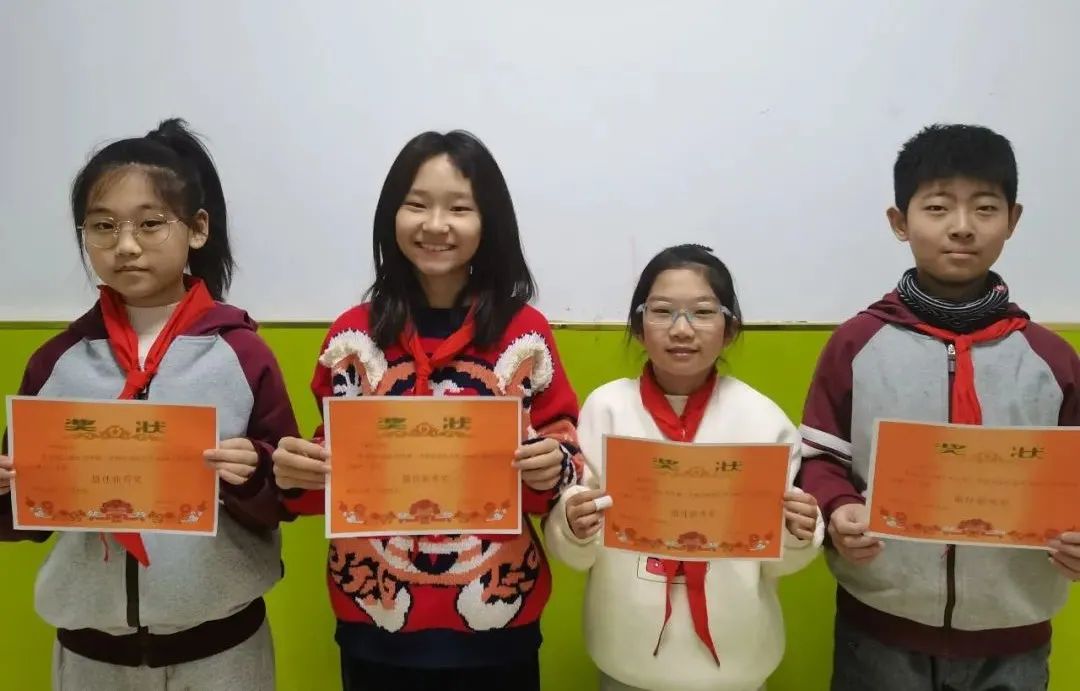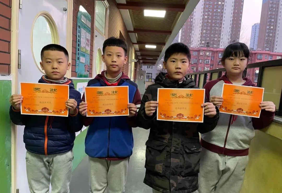 四(1)班:郝碩洋、盧天辰、吳尚澤;四(2)班:毛沐辰、吳宇軒、崔容溪、趙文赫;四(3)班:馬路堯、謝依辰、潘泊汛、耿啟龍;四(4)班:柴泓宇、閆天怡、陳林漪、李姚涵;四(5)班:李墨琳、伊澤坤、楊夢妮、劉雅涵。