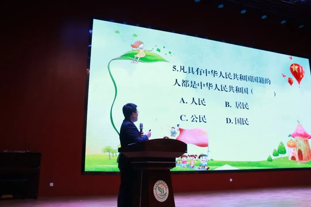 在進行憲法知識競答環(huán)節(jié)中,現(xiàn)場氣氛高漲,通過學習,對于李檢察官的問題,同學們都踴躍回答,同學們通過此場活動認真聆聽,都了解了作為公民應該履行的基本權(quán)利和義務(wù)。