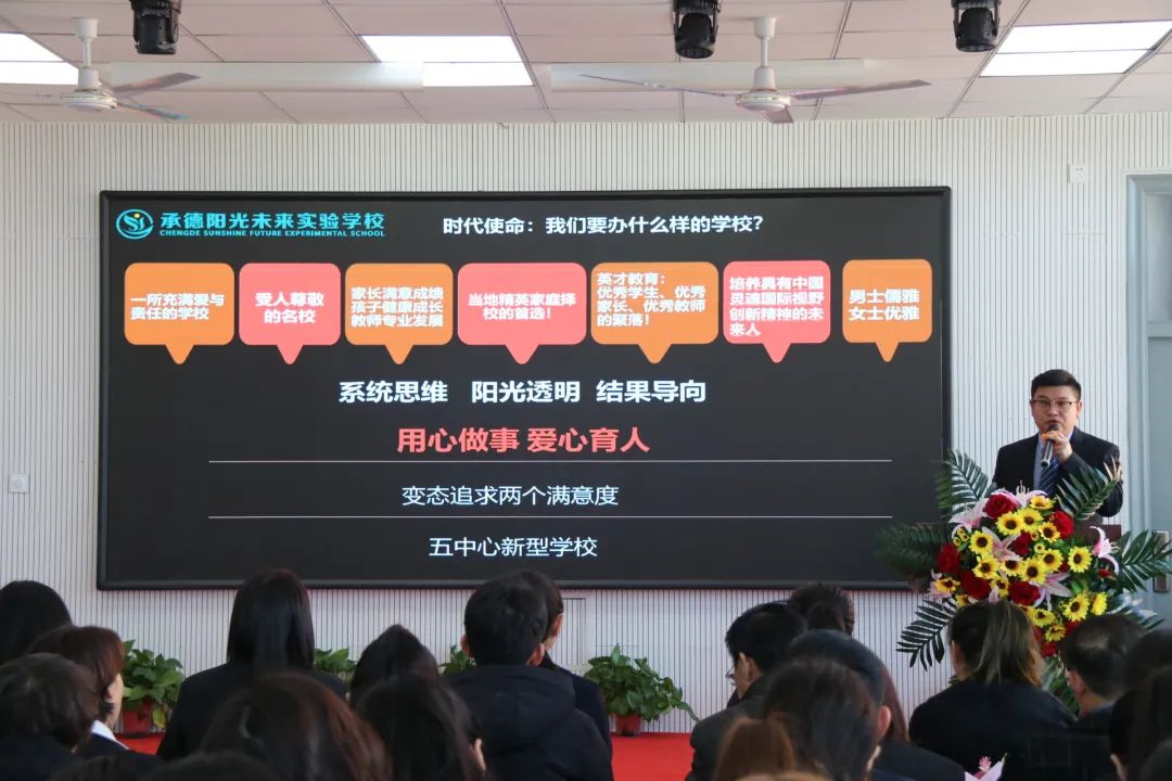 明道 簡短的儀式過后,張孝文校長就學(xué)校全局發(fā)展的思維體系對全體教師展開培訓(xùn)。