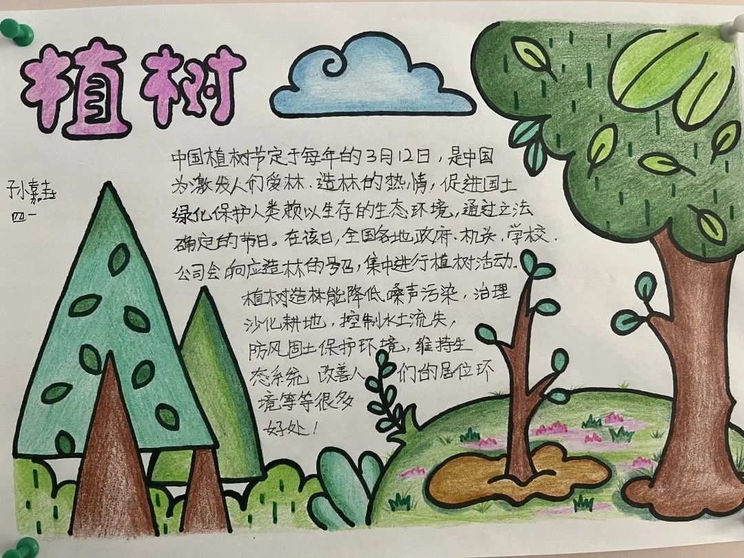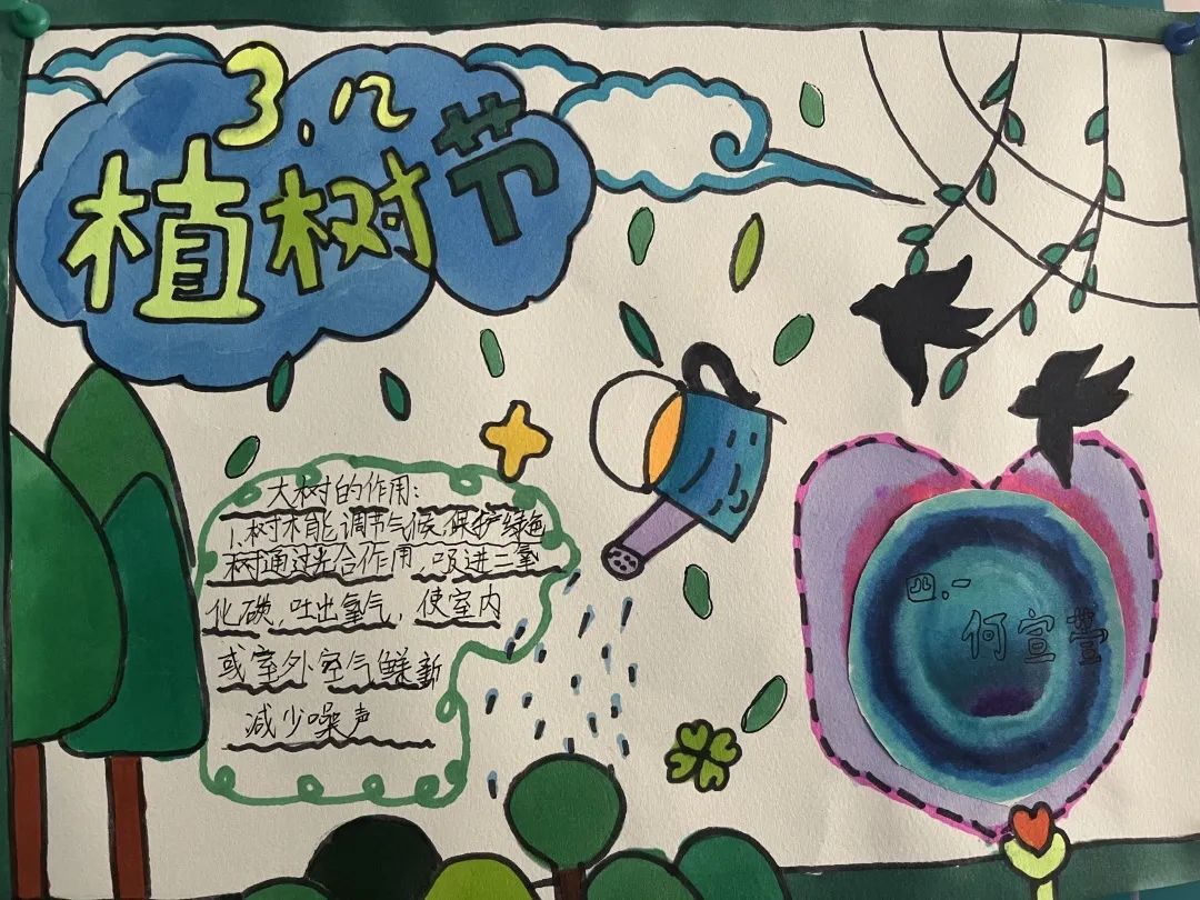 這次展覽作品主題鮮明突出、設(shè)計(jì)獨(dú)特新穎、文字圖畫(huà)色彩搭配合理,內(nèi)容豐富多彩,有耳熟能詳?shù)睦卒h事跡,有身邊的好人好事,有植樹(shù)節(jié)的來(lái)歷......同學(xué)們觀讀后贊不絕口。
