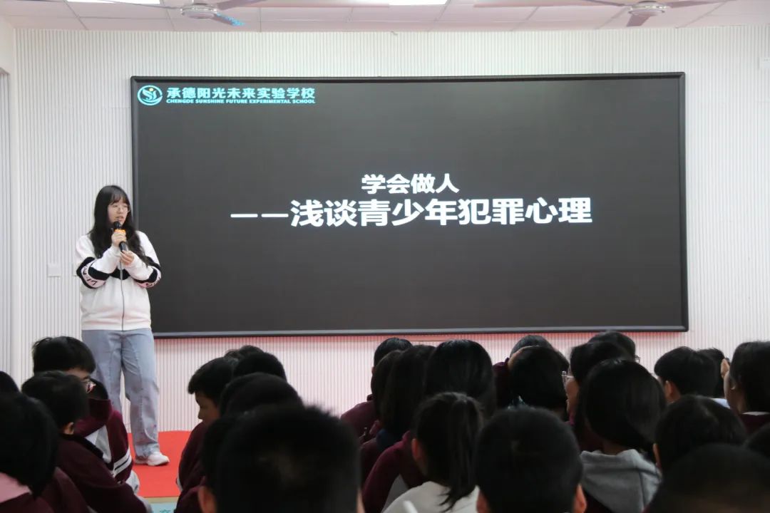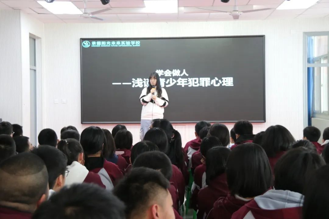 邁好青春步伐,方能走好人生路。 為進一步增強學生的法制紀律觀念,樹立正確的人生觀、價值觀,預防學生違法犯罪,促進學生健康成長,營造安全良好的校園環(huán)境。我校初中部組織開展了“預防青少年違法犯罪”的主題的德育講座,講座由我校心理咨詢教師孫文主持演講。