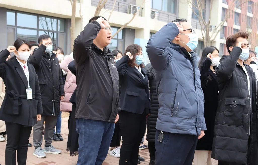 侯冉老師帶領(lǐng)全體教師宣誓 師者宣言: 師者,當(dāng)敬畏、尊重、仰望每一個(gè)生命; 用生命傳遞生命; 用靈魂喚醒靈魂; 用人格塑造人格。 師者,當(dāng)基于每一個(gè)生命, 發(fā)展每一個(gè)生命, 成就每一個(gè)生命, 讓每一個(gè)生命靈動(dòng)飛揚(yáng)!