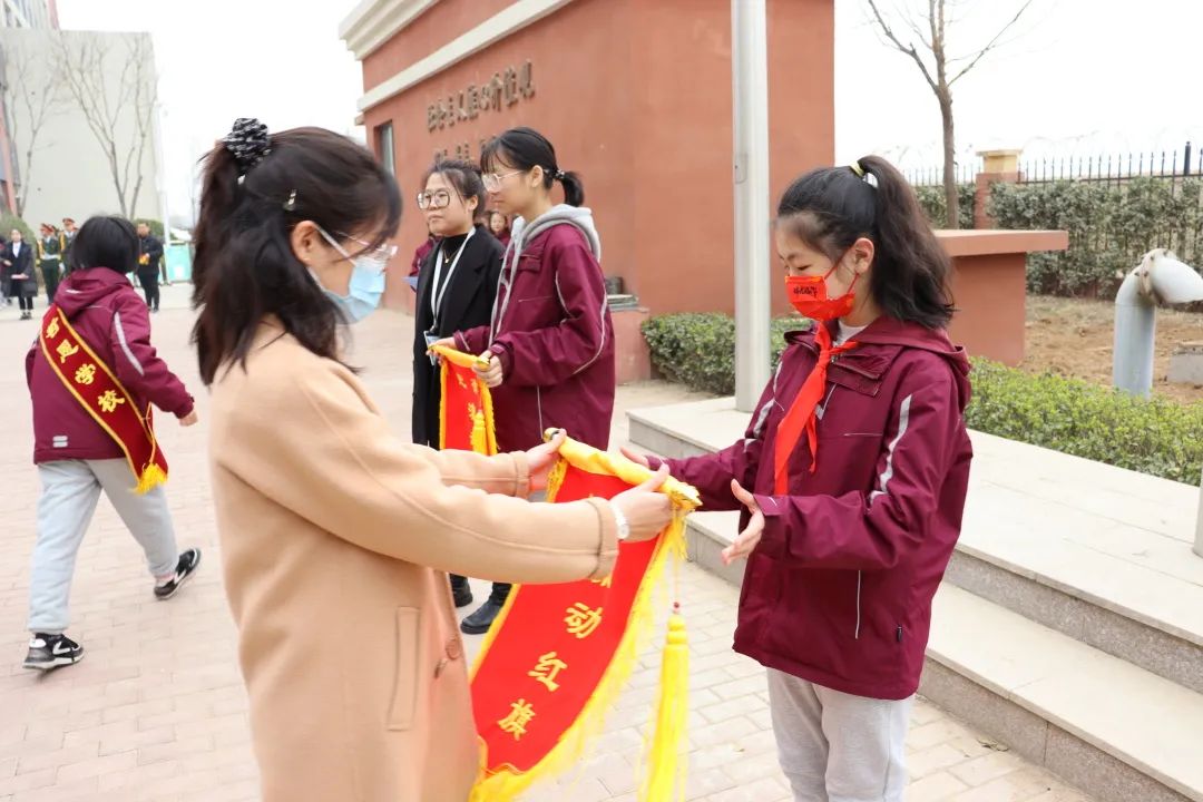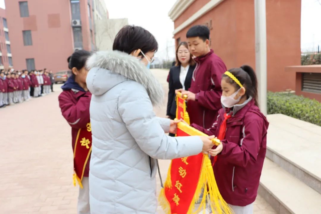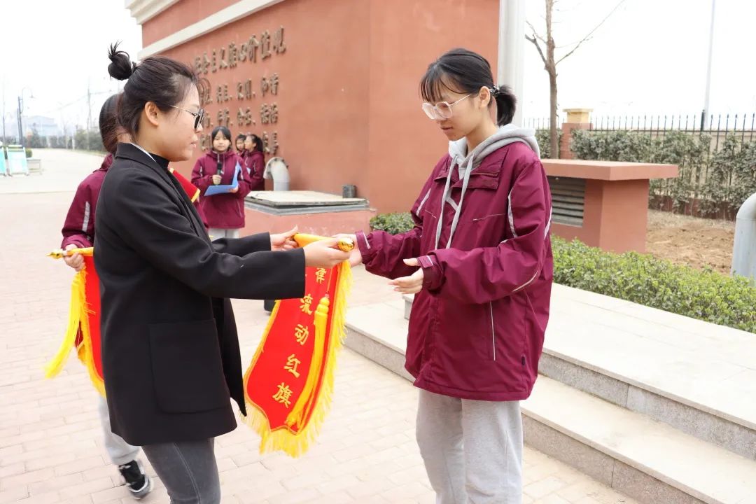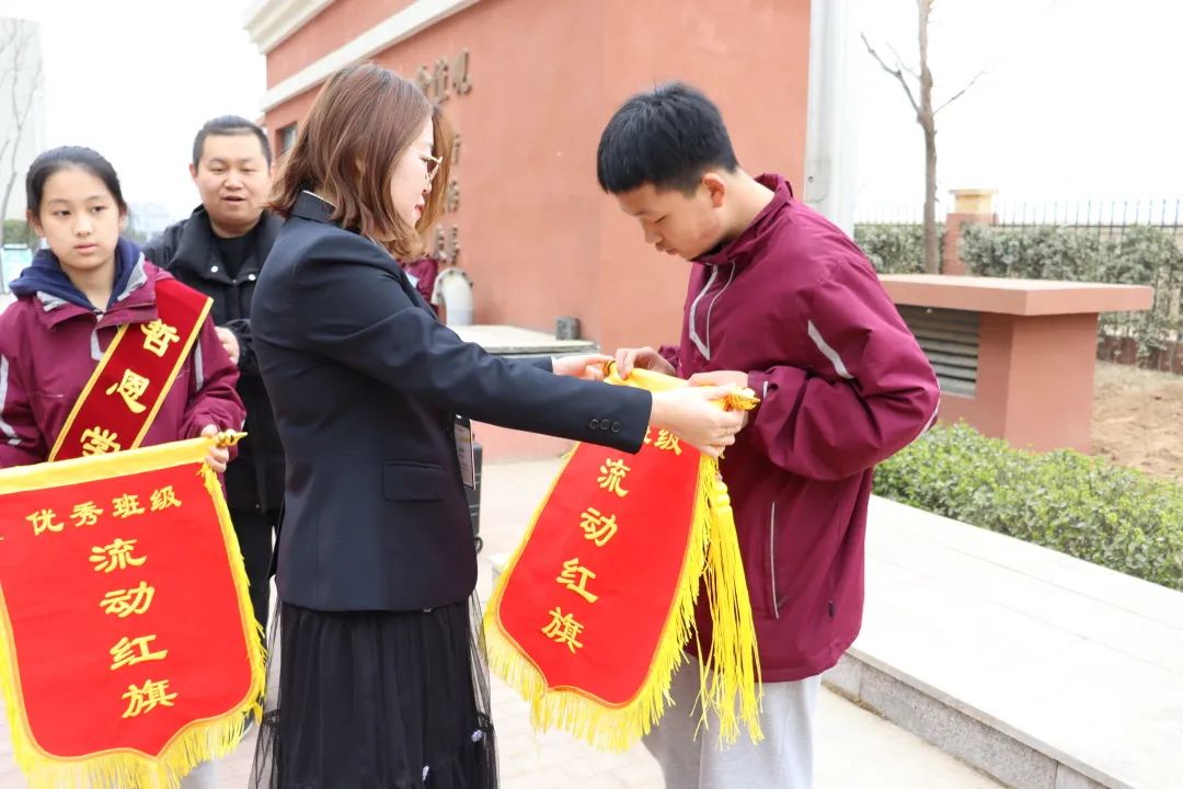 各班班主任分別為優(yōu)秀班集體頒發(fā)流動(dòng)紅旗