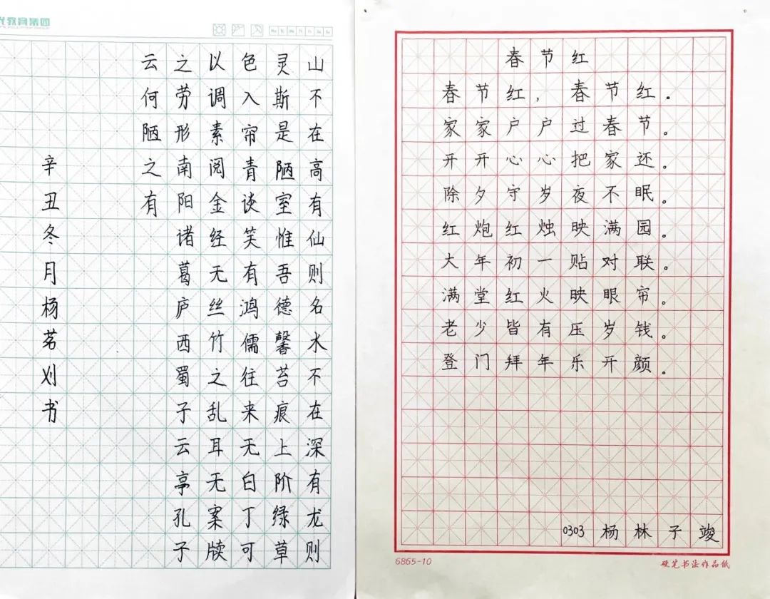 新學(xué)期伊始,學(xué)校為了鞏固提升“雙減”工作成果,關(guān)注學(xué)生們良好學(xué)習(xí)態(tài)度的持續(xù)發(fā)展,檢驗(yàn)學(xué)生假期自主學(xué)習(xí)的效果,促進(jìn)學(xué)生學(xué)習(xí)態(tài)度的轉(zhuǎn)變。近日,安順陽光未來學(xué)校小學(xué)部開展了“展特色作業(yè),秀多彩寒假”作業(yè)展評(píng)活動(dòng),為學(xué)生們提供了展示自我及交流學(xué)習(xí)的機(jī)會(huì)。讓我們一起來欣賞一下孩子們的個(gè)性與風(fēng)采吧! 小小書法家 胸藏文墨虛若谷,腹有詩書氣自華。為傳承和弘揚(yáng)中華書法文化,培養(yǎng)學(xué)生心無旁騖、堅(jiān)持不懈的好習(xí)慣,小學(xué)部老師號(hào)召同學(xué)們利用寒假進(jìn)行書法練習(xí)。