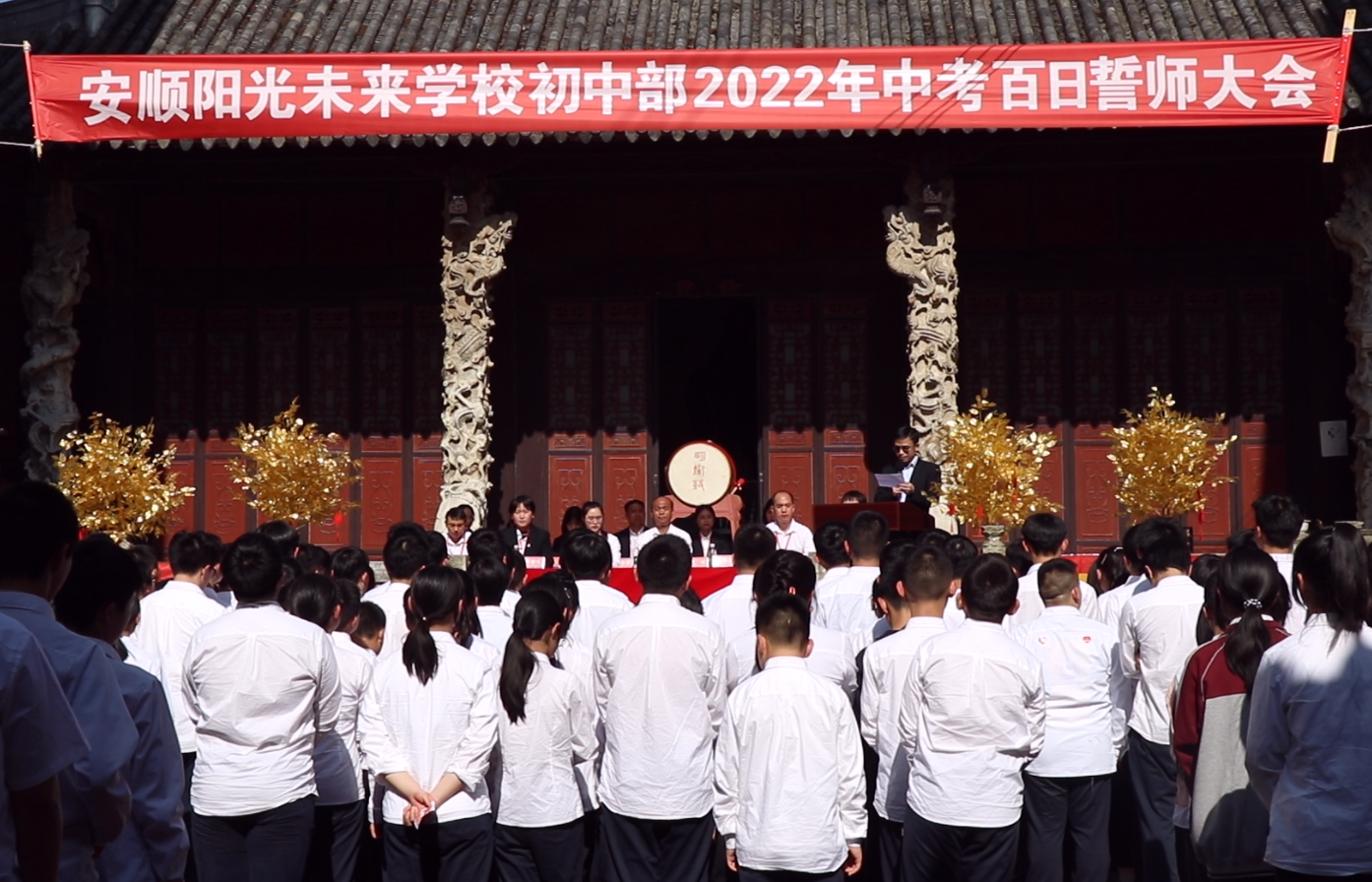 初春三月,春寒料峭;憧憬六月,熱血沸騰。為進(jìn)一步鼓舞士氣,激發(fā)初三學(xué)子的昂揚(yáng)斗志和拼搏精神,以良好的狀態(tài)備戰(zhàn)中考,3月17日下午16點(diǎn),安順陽光未來學(xué)校初三年級(jí)全體師生滿懷激情迎來中考百日誓師大會(huì)。本次大會(huì)由劉昌龍副校長(zhǎng)主持。