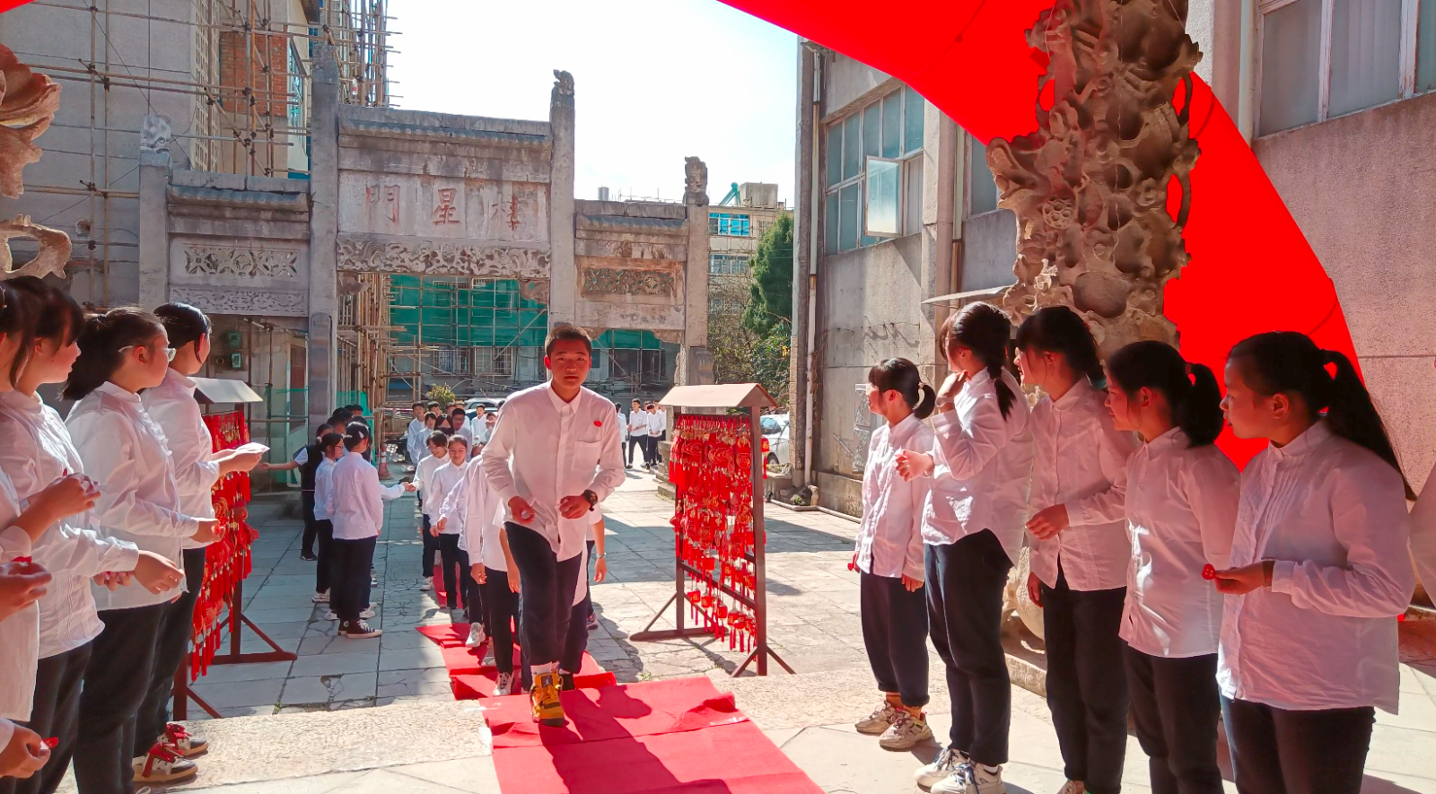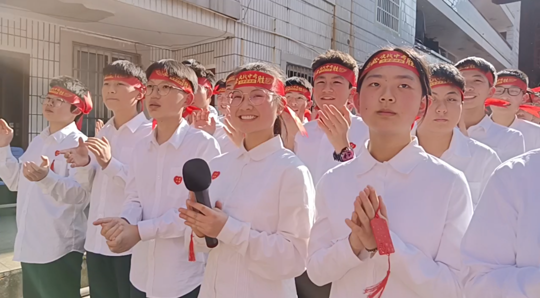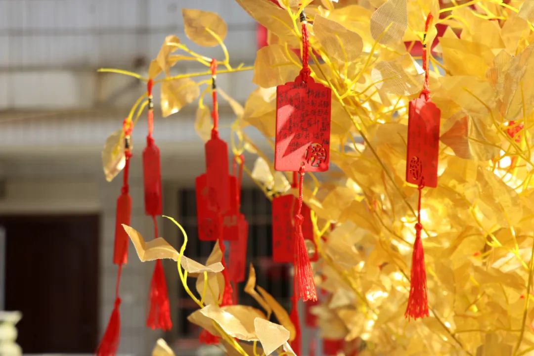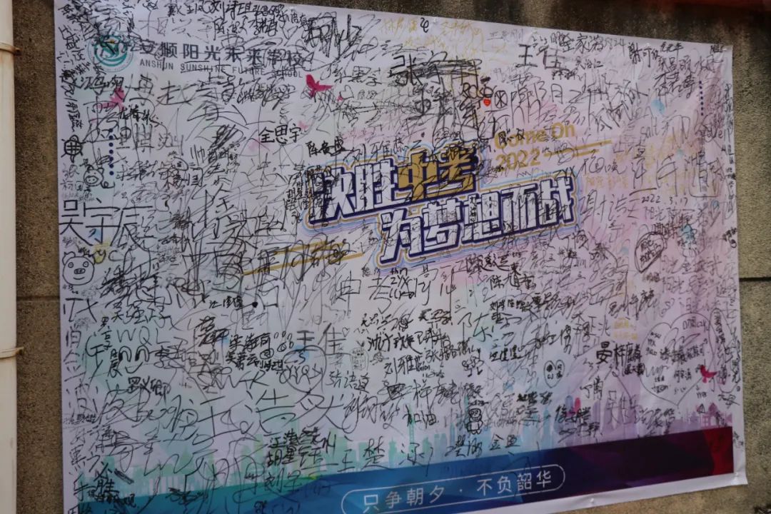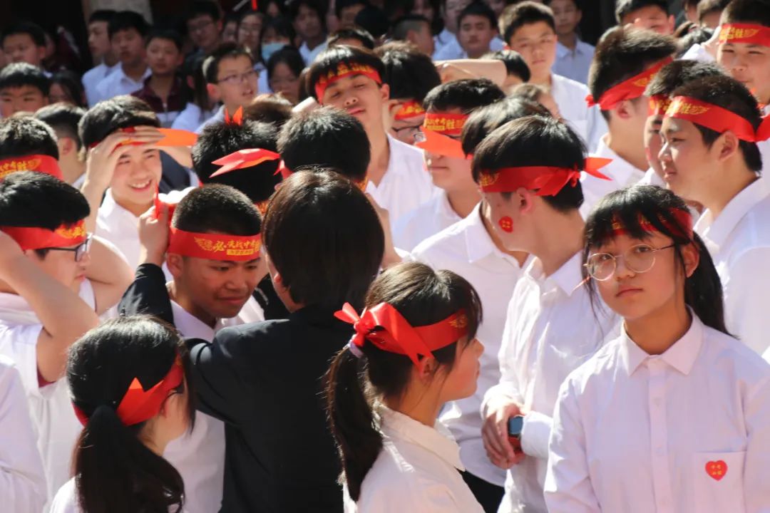 學(xué)子們與老師們相互擊掌,將寫有自己祝福許愿牌掛在許愿樹上,寓意6月高中。