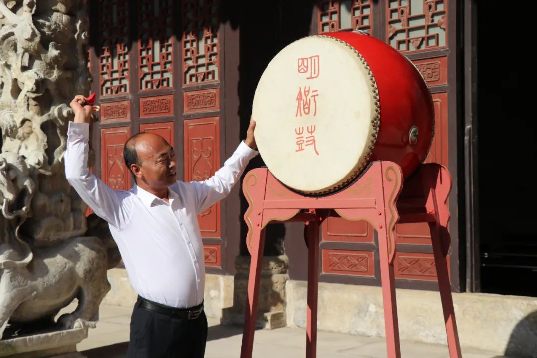段海春校長(zhǎng)擊鼓為學(xué)子們祝福。