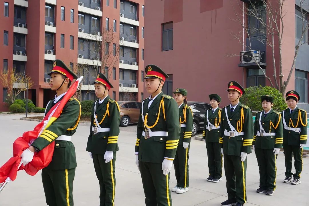國(guó)旗隊(duì)成員:七年級(jí)四班的馬天翔、七年級(jí)四班的李承翰、七年級(jí)四班的李欣蓓、七年級(jí)二班的安家鑫、七年級(jí)二班的李夢(mèng)陽、七年級(jí)三班的龔子洲、七年級(jí)三班的于澤優(yōu)、七年級(jí)一班的李子騰。