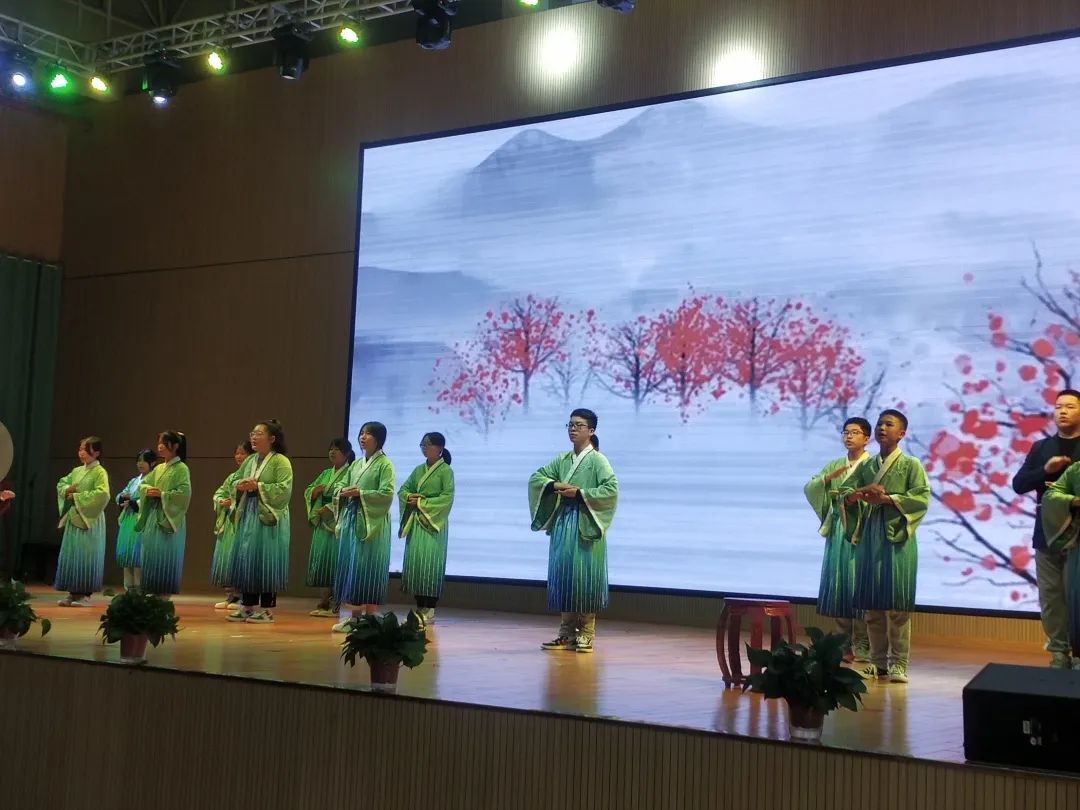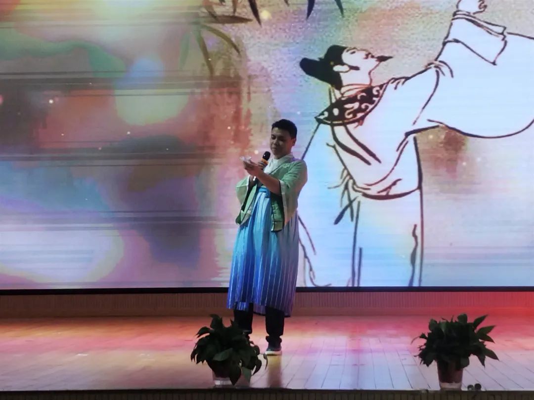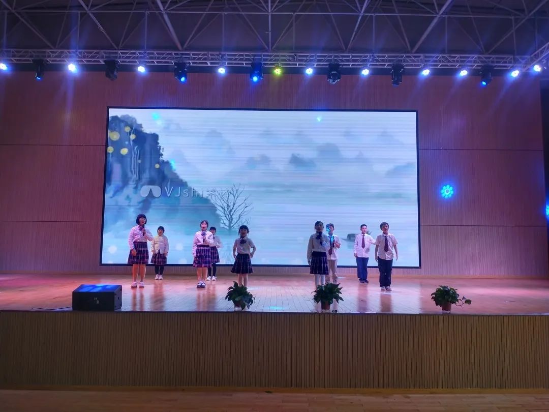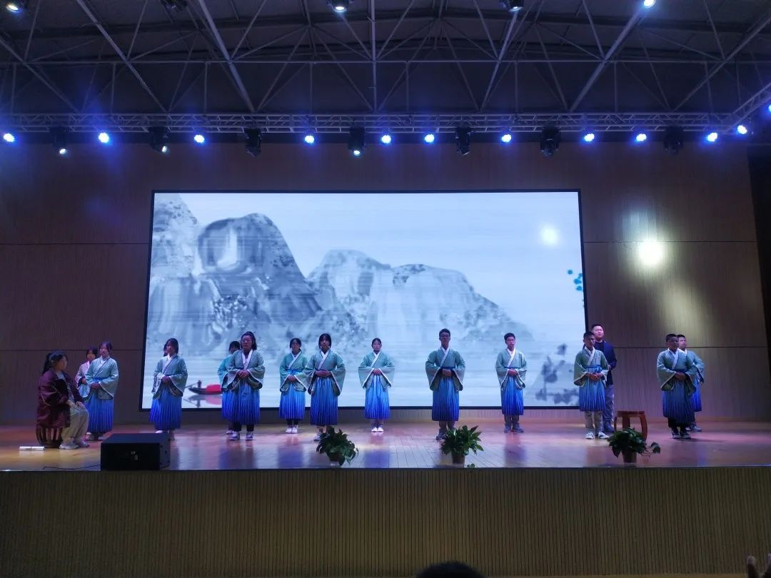 在隨后的視聽(tīng)朗誦盛宴中,師生們通過(guò)沉浸式舞臺(tái)劇表演,激情飽滿的詞賦吟誦,聲情并茂的詩(shī)歌朗讀等方式,將一個(gè)個(gè)精彩的節(jié)目串聯(lián),引人入勝,不絕于耳……