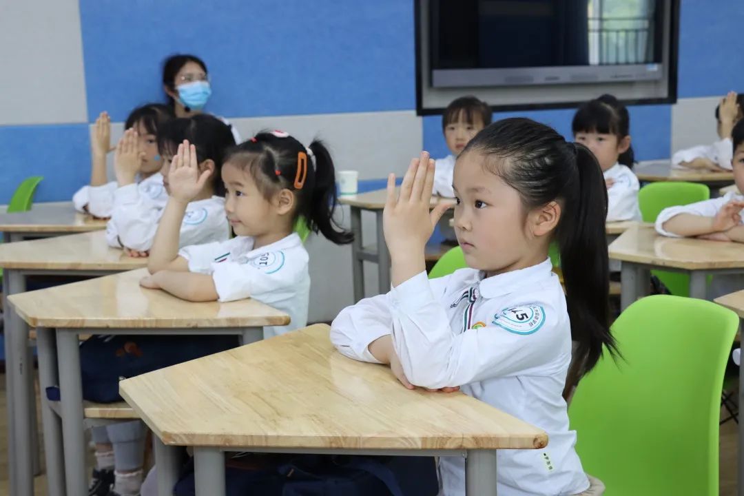 集體觀看了我校一、二年級小朋友經(jīng)典誦讀表演后,萌娃們還走進課堂,親身感受了小學(xué)生們認真聽講、積極回答問題的學(xué)習(xí)氛圍。趣味英語培養(yǎng)興趣,認識圖形啟發(fā)思維,國學(xué)經(jīng)典提升素養(yǎng),有趣高效的課堂強烈地激發(fā)了孩子們對小學(xué)生活的美好向往和期待。