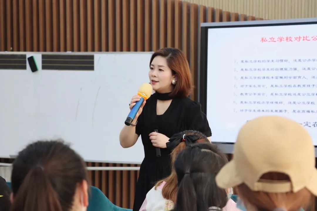孩子們參加活動的同時,家長們也來到陽光大講堂參加家庭教育講座,執(zhí)行校長董曉維圍繞學(xué)校的教育理念、辦學(xué)策略、師資團隊、課程設(shè)置等內(nèi)容作了詳細的介紹,還為家長分析幼小銜接可能會面臨的教育問題,倡導(dǎo)應(yīng)把家庭教育和學(xué)校教育形成合力,共同促進學(xué)生的身心健康發(fā)展。家長紛紛表示自己大受啟發(fā),對小孩到學(xué)校就讀充滿了希望。 家庭教育講座