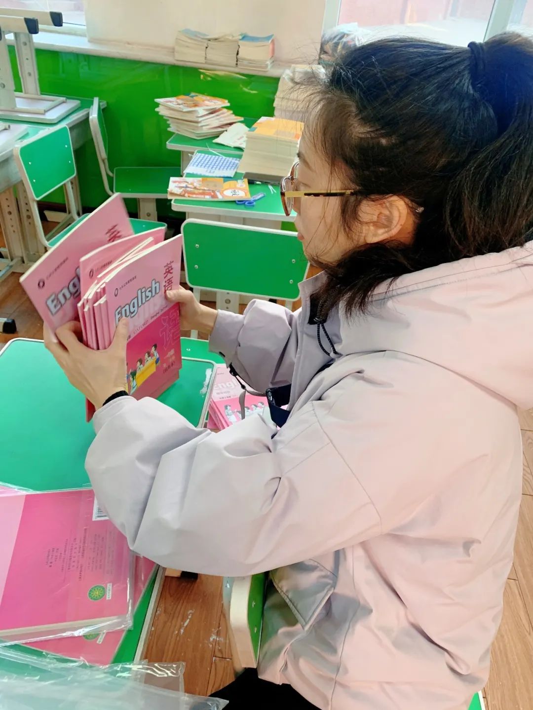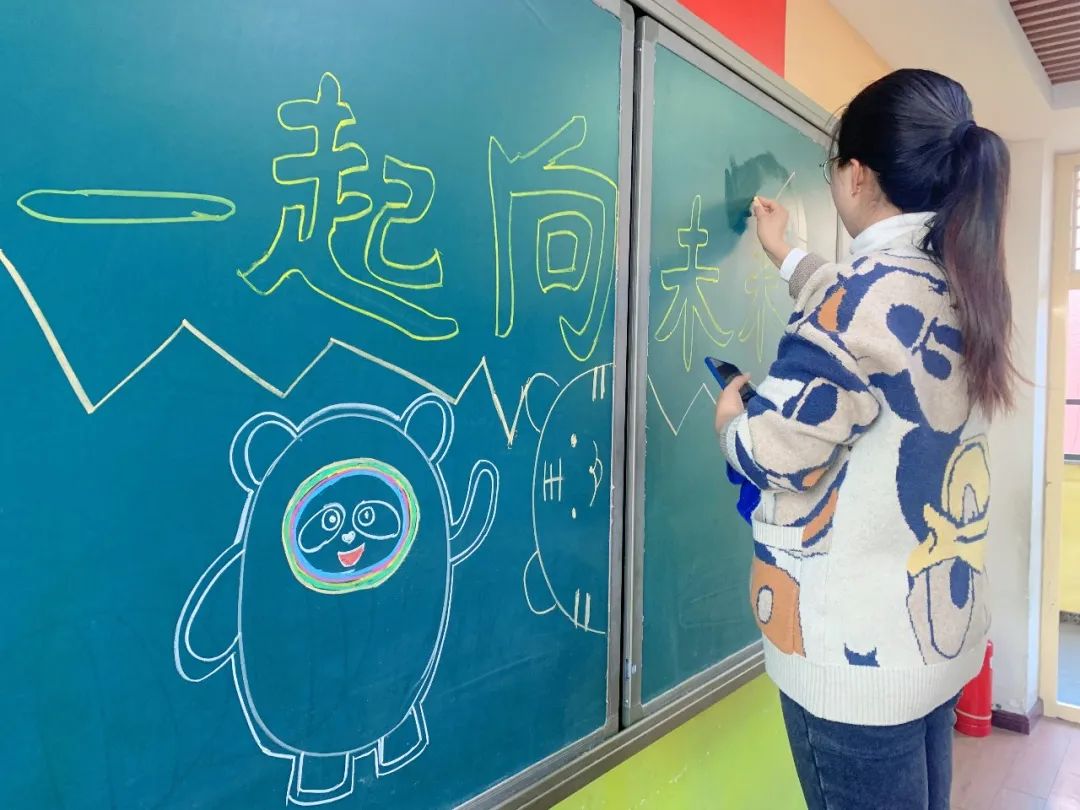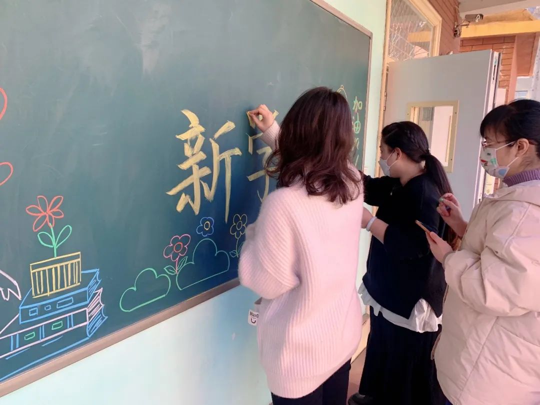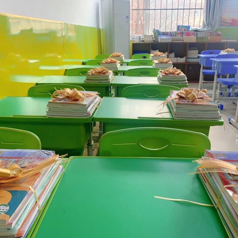老師們?yōu)楹⒆觽冏隽俗詈蟮氖瘴?,布置板報,分發(fā)書本,還精心為孩子們準(zhǔn)備了小驚喜!