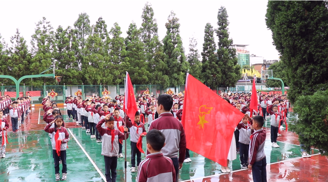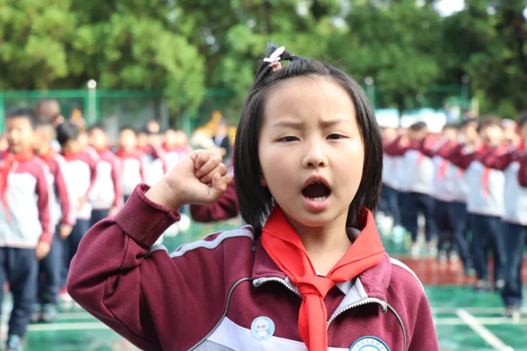 伴隨著雄壯有力的出旗曲,旗手和護(hù)旗手邁著整齊的步伐前行,入隊(duì)儀式拉開了帷幕。少先隊(duì)員們熱情飽滿地齊唱隊(duì)歌《我是共產(chǎn)主義接班人》,抒發(fā)著同學(xué)們對少先隊(duì)的向往與熱愛。少先隊(duì)代表宣讀新隊(duì)員名單,老隊(duì)員為新隊(duì)員佩戴紅領(lǐng)巾,隊(duì)員們互敬隊(duì)禮。