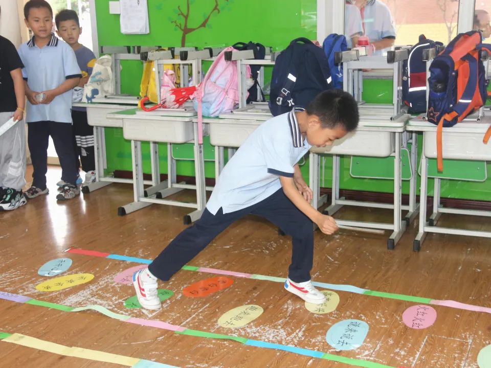 游戲規(guī)則: 設(shè)置三條河,三條河上分別擺放印有語文會(huì)認(rèn)字、數(shù)學(xué)口算題和英語單詞的石頭??忌M(jìn)入考場后,設(shè)置一名考官在語文河前提出過河要求,考生一邊按要求讀出會(huì)認(rèn)字,一邊過河。到了語文河對岸再按相應(yīng)要求去過數(shù)學(xué)和英語河前,找考官領(lǐng)取題目過河。