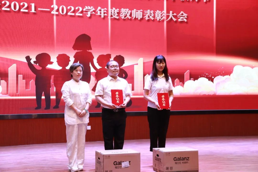 領(lǐng)導(dǎo)為2021--2022學(xué)年度受表彰教師頒獎(jiǎng) 校家委會(huì)主任張欣女士為招生特殊貢獻(xiàn)獎(jiǎng)教師頒發(fā)證書(shū)及獎(jiǎng)勵(lì)