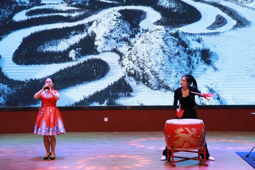 藝體中心嗩吶趙靜波老師與架子鼓張瑤老師為大家演奏的曲目為《黑土地》,此曲基調(diào)歡快流暢,舒緩部分如行云流水,高潮部分鏗鏘有力,非常有生活情趣,處處體現(xiàn)勞動(dòng)人民慶祝豐收的喜悅和對(duì)美好生活的憧憬。