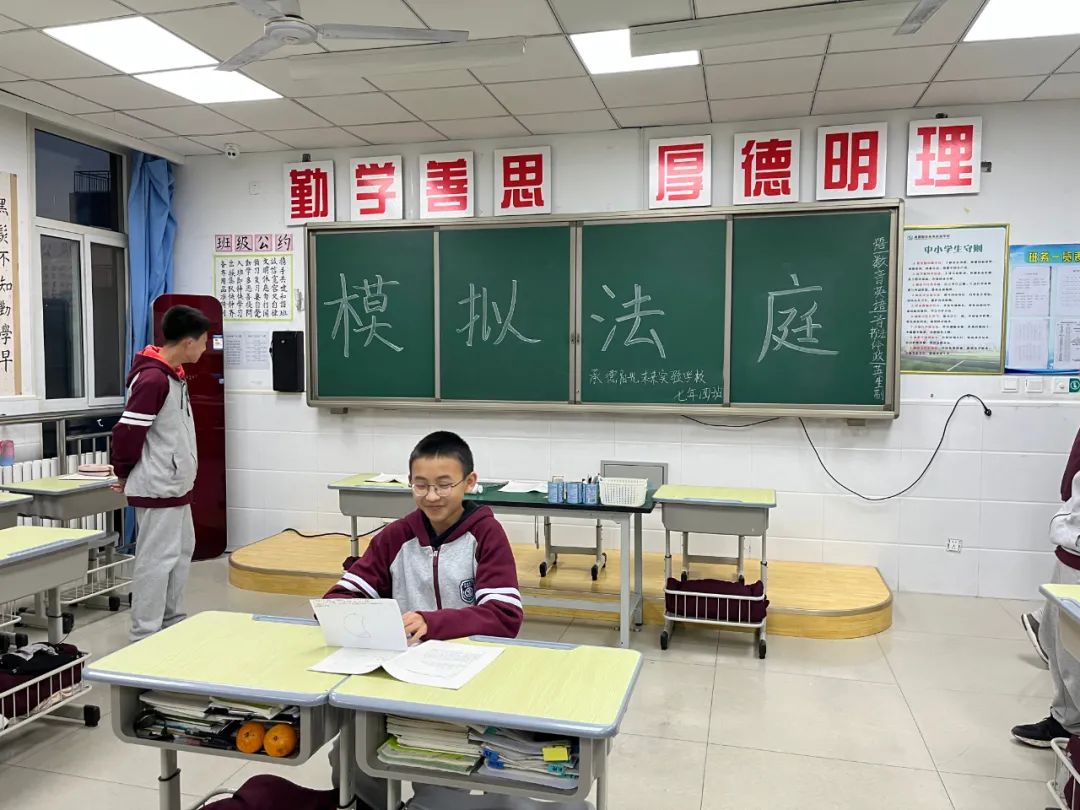 模擬法庭 此前,我校初學(xué)部七年級(jí)還組織開(kāi)展了青少年模擬法庭系列活動(dòng)。