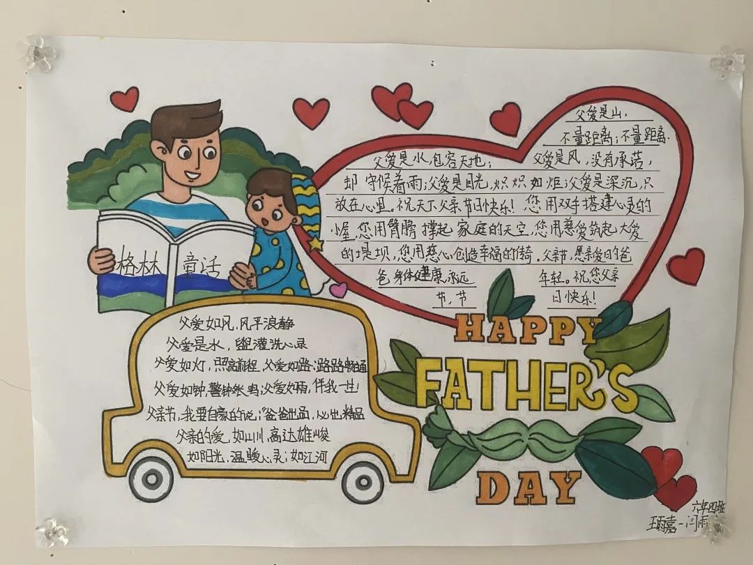 父親節(jié)手抄報(bào) 父愛如傘,為孩子們遮風(fēng)擋雨。各班積極踴躍地參與,認(rèn)真收集資料,通過文字及圖畫來表達(dá)心中對(duì)父親的真摯情感,深切地表達(dá)了自己對(duì)父親的愛意以及敬意。