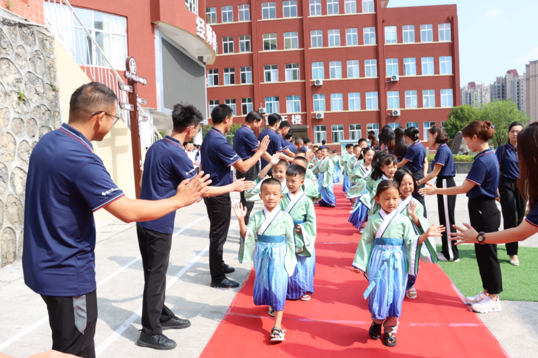 典禮在莊嚴(yán)的國歌奏唱聲中拉開帷幕。李校作新學(xué)期致辭,她代表陽光教育集團(tuán)都勻校區(qū)向剛?cè)雽W(xué)的新同學(xué)表示熱烈的歡迎,向一直以來兢兢業(yè)業(yè)、辛勤耕耘的全體教職員工致以最親切的問候和最美好的祝愿。 李校還用三句話鼓勵(lì)全體陽光師生,致陽光學(xué)子一一努力成長為理想中的自己;致陽光教師一一與陽光一起創(chuàng)造令人驚嘆的故事;致全體陽光人一一如果生活是世界上最爛的編劇,我們要爭取做自己人生最好的演員!希望師生們能在陽光校園共同成長,勇攀高峰! 開筆禮:
