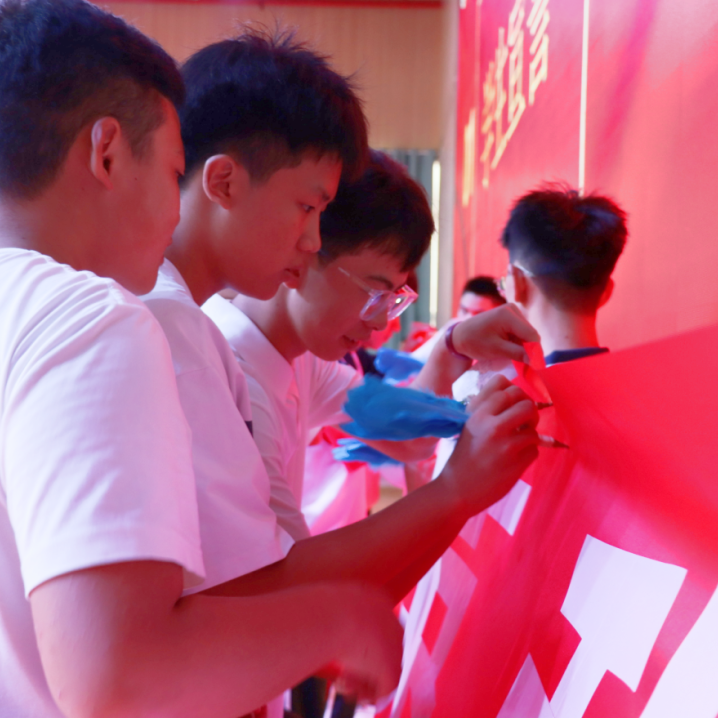 隨后,進(jìn)行中考啟動(dòng)儀式。同學(xué)們激情宣誓,斗志滿滿,堅(jiān)毅地在橫幅上寫下自己的名字。中考是人生十字路口的抉擇,是一次青春的洗禮。九年寒窗,在此一搏,沖刺中考,磨礪人生,搏擊風(fēng)雨,駕舟斬浪,懷揣夢想,策馬雄關(guān),青春永不言敗。300天后,金榜題名。
