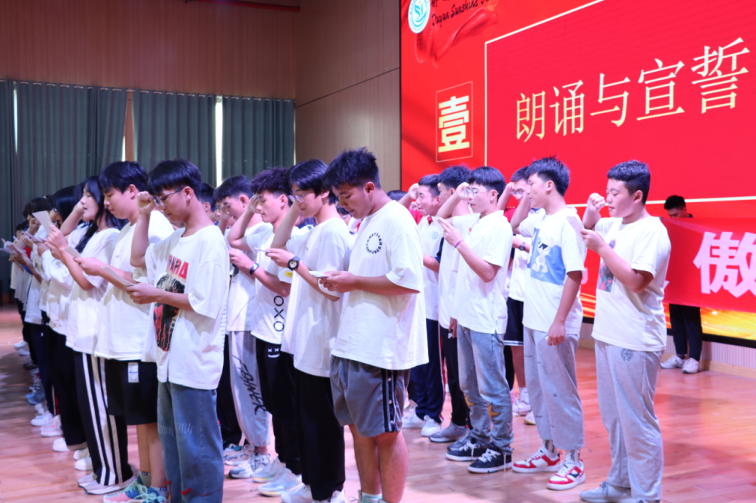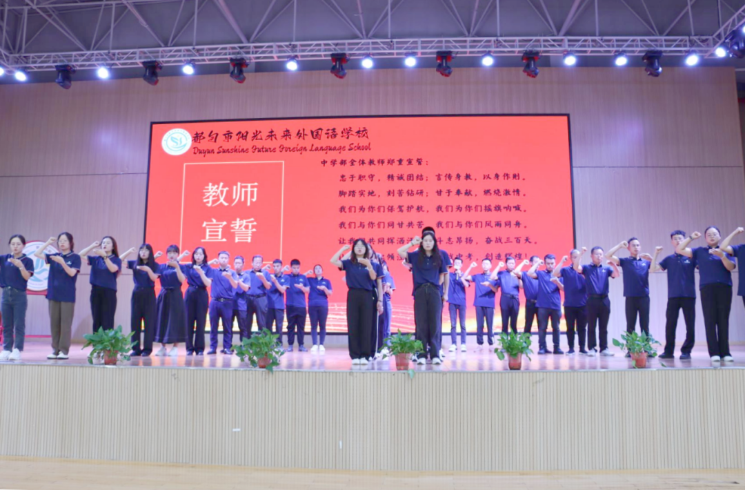 中學(xué)部老師們舉起右手莊嚴(yán)宣誓。在鏗鏘有力的誓言中,老師們希望一鼓作氣,以永不放棄、奮勇爭先的信念助力中考考生實(shí)現(xiàn)“金榜題名”。傳遞中考沖刺的意志,傳揚(yáng)中考必勝的決心!