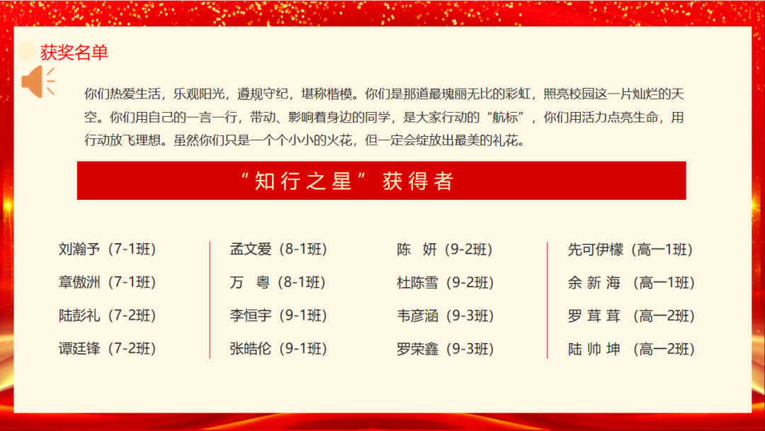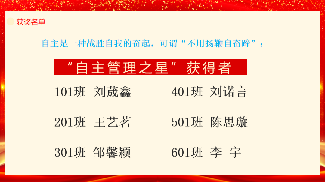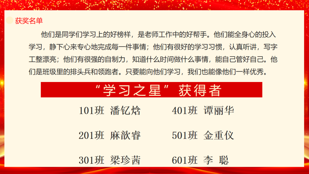在師生的的熱烈的掌聲中,九月總結(jié)表彰大會(huì)正式啟動(dòng),表彰大會(huì)對(duì)在九月學(xué)習(xí)生活中表現(xiàn)突出、進(jìn)步明顯的學(xué)生頒授榮譽(yù),設(shè)有文明之星、學(xué)習(xí)之星、希望之星、運(yùn)動(dòng)之星等多個(gè)獎(jiǎng)勵(lì),進(jìn)一步激發(fā)孩子們?nèi)矫姘l(fā)展的潛力。