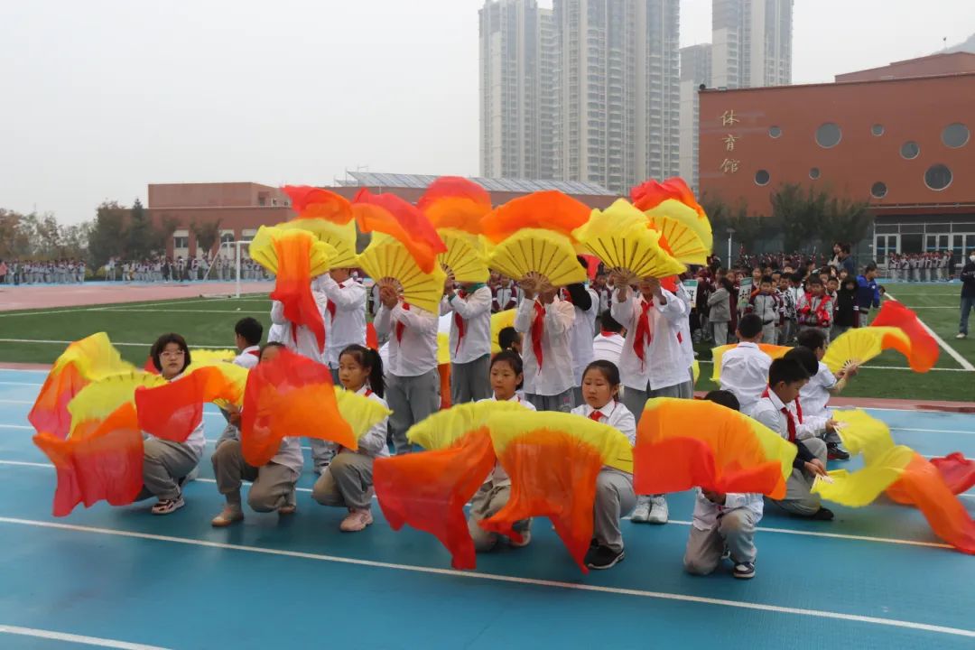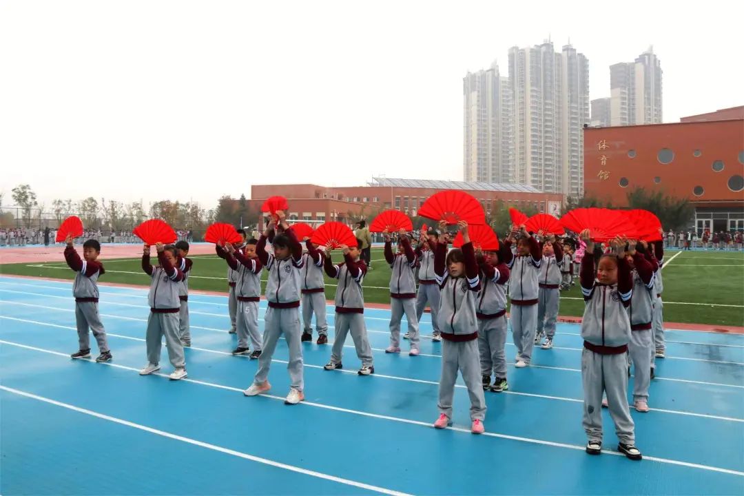 翩翩少年乘風(fēng)而至 伴隨著雄壯激昂的《運動員進行曲》,小學(xué)、初中方隊依次經(jīng)過主席臺前進行創(chuàng)意表演。每個班級方隊各具特色,一揮一舞之間,盡顯少年活力!
